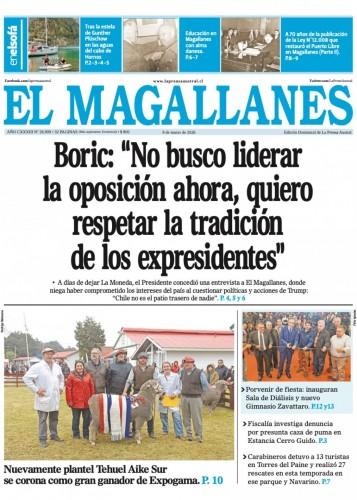 – En su última entrevista con El Magallanes, el Mandatario realiza un balance de su gestión antes de entregarle la banda presidencial a José Antonio Kast. Defiende la reforma previsional, aborda la derrota de su sector y sostiene que Chile debe mantener una política exterior soberana frente al liderazgo de Donald Trump.